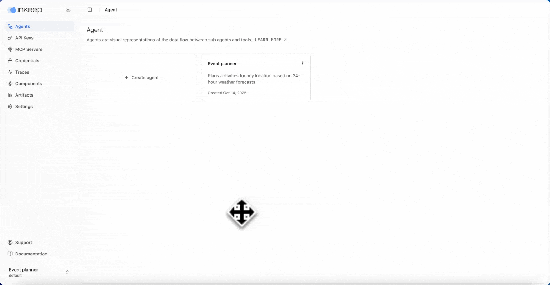 One of the key advantages of Inkeep is its code-to-visual workflow. You can define your agents in code, push them to the Visual Builder, and continue developing with the intuitive drag-and-drop interface.